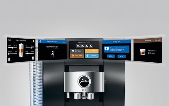 Z10 är rolig att äga och uppfyller alla krav på en designklassiker: Den utmärker sig genom högsta kvalitet, tidlös elegans och kompromisslös funktionalitet. Den eleganta vågdesignen framhäver vattentanken och formar framsidan konvext/konkavt. Den utåtböjda manöverpanelen bjuder in till interaktion, medan kopplattformen bildar en ståtlig scen. Tack vare den idealiska vinkeln visar den 4,3 tum stora färgdisplayen upp sig från sin allra bästa sida och får världarna av njutning att glittra. Alla som tittar på Z10 kommer att se kärleken till design i varje detalj.
