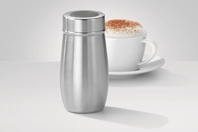 Dekorera din cappuccino med fint kakaopulver med hjälp av den eleganta kakaoströaren av rostfritt stål.