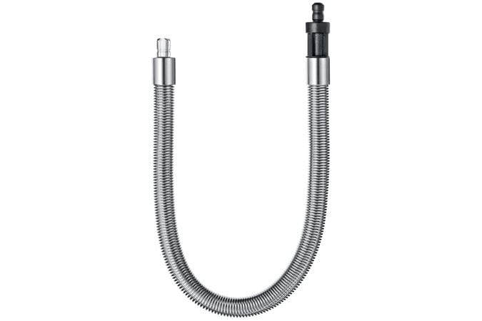 Mjölkslangen med hölje i rostfritt stål kan skäras till i önskad längd, men vi rekommenderar den förmonterade längden på 23 centimeter.
