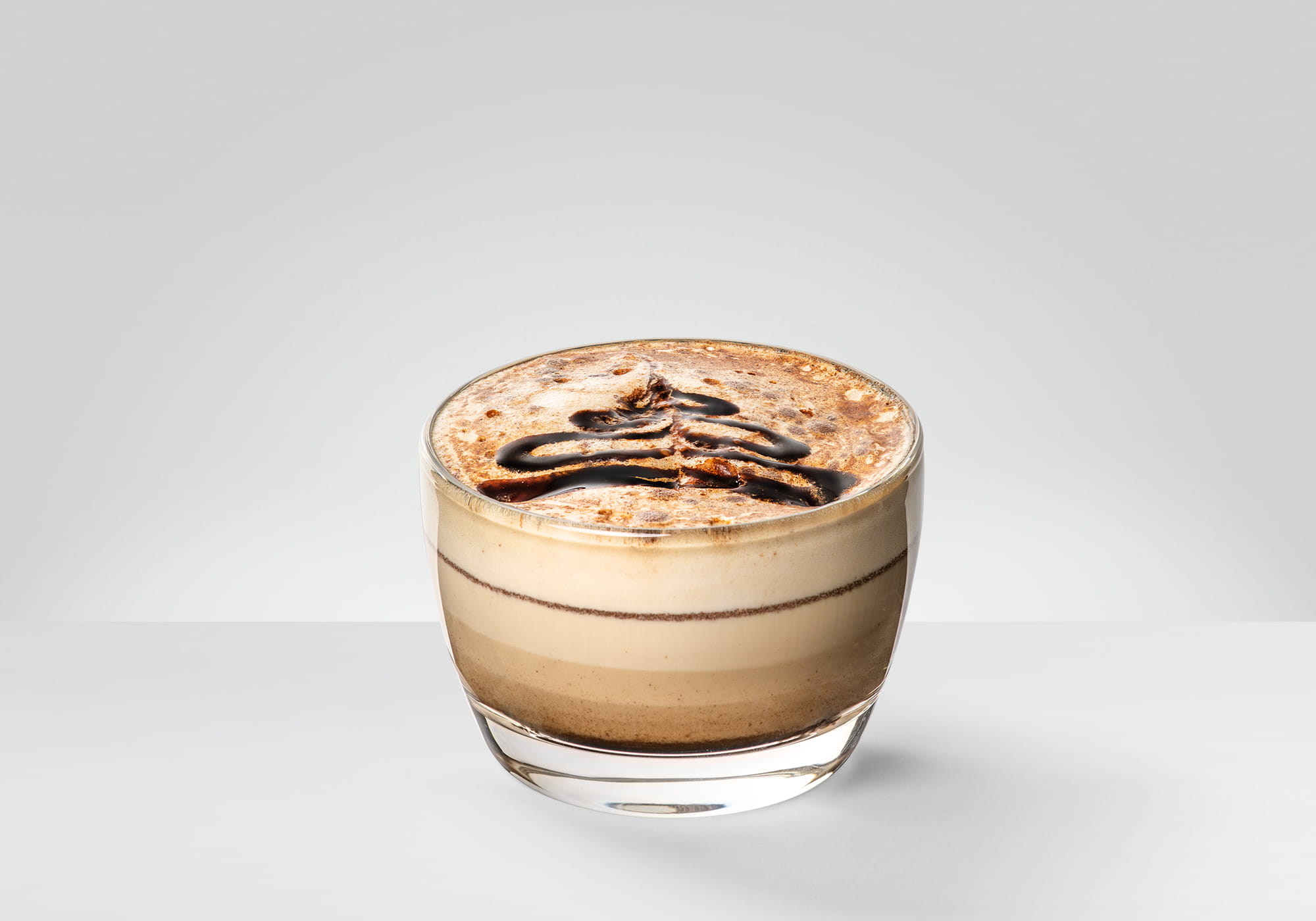 Julpynta din flat white med chokladsås (t.ex. i form av en julgran eller en stjärna).