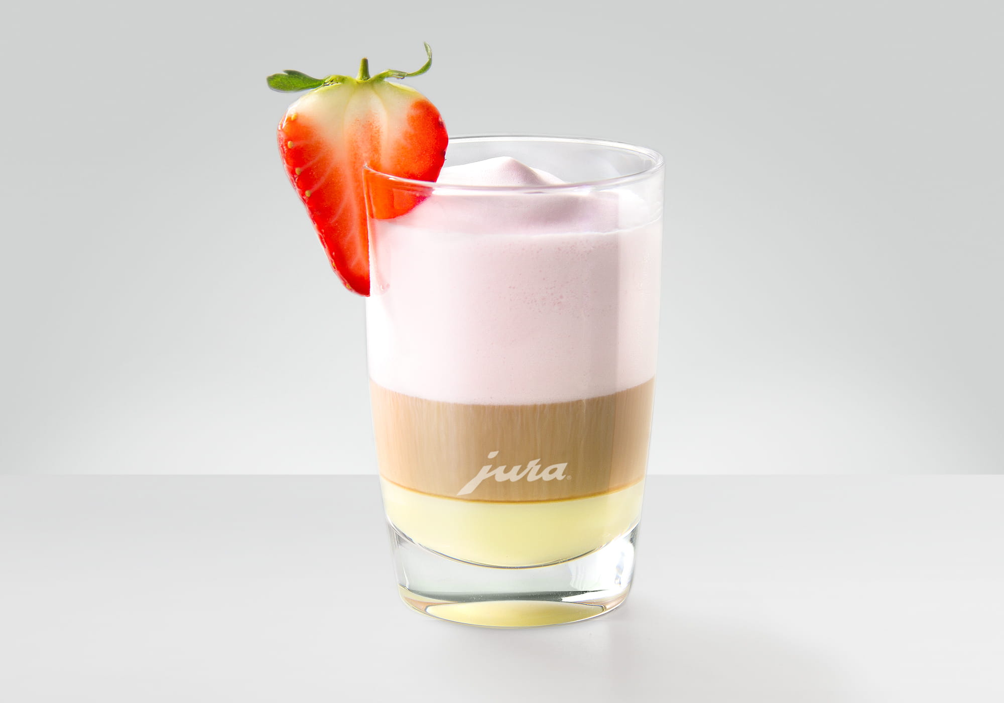 • Häll mjölken och jordgubbssirapen i mjölkskummaren och tillred en portion varmt mjölkskum.