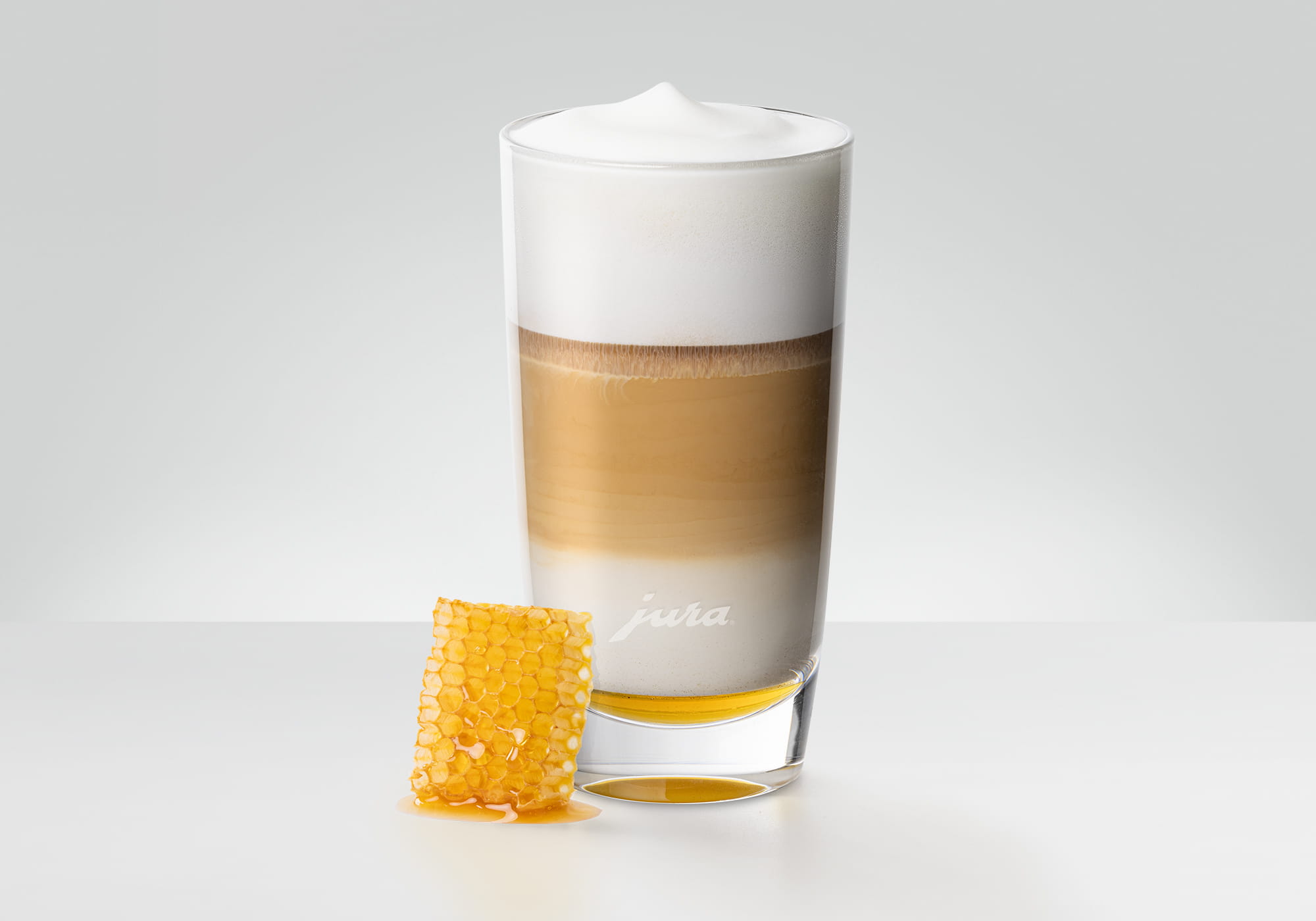 • Ställ upp ett latte macchiato-glas och tillsätt honungen.
