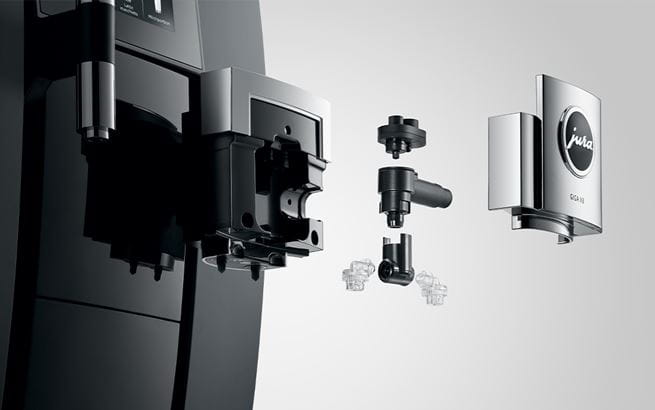GIGA X8c har ett höjdinställbart kombinationsutlopp med genomtänkt konstruktion. Tack vare finskumstekniken är det möjligt att tillreda trendiga, fulländade specialiteter med mjölk och mjölkskum. Hastighetsfunktionen sörjer för kaffespecialiteter på rekordtid.